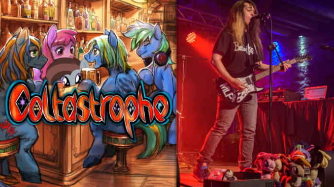 Coltastrophe, our British horse band friends with vintage rock style, allergic to backing tracks, are a must have for any hard rock party! The band around Cracking Laser, Blackened Blue, Sound Check and Rythm Sticks have been guests to our dear friends at Rock Nessie and Everfree Encore several times now and everytime the crowd was ROCKING in no time!